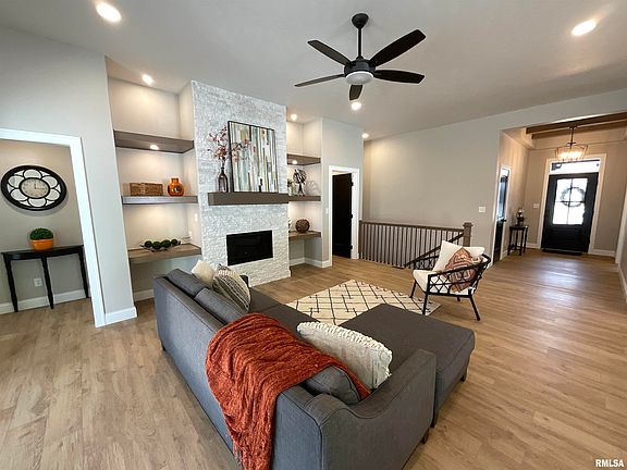 Don't miss a chance to experience the service & quality of being part of the Brooklynn Homes family of customers. Just WOW! Open high ceiling concept enhances every feature this home has. 10-0 high ceilings through-out entire main body, foyer, & primary suite. Living space has signature Brooklynn homes built-ins & ceiling beams blended w/overall interior design concepts of Designer Jamie Llosa which tie this home together in spectacular fashion. Living rm has full stone-faced FP which presents rustic feel softened by floating shelves flanking each side w/puck lights on each shelf to show off the collection of family photos/ your latest art collection. Kitchen has a nice pantry, island with breakfast bar and eat in dining area. Backsplash is a perfect touch against the gorgeous quartz tops. Primary bedroom boasts a trayed ceiling. Full tiled primary shower walls are showcased w/a glass shower enclosure and double bowl sinks. Go from the primary bath straight into your walk-in closet and from there through sliding doors into the laundry room with access to a main hallway. Enjoy grilling on the covered 13.9x9 porch out back.