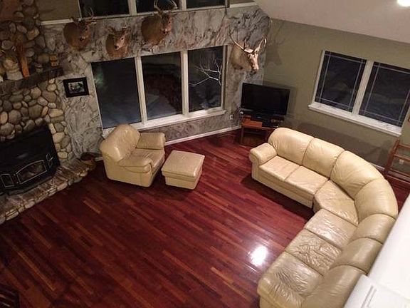 Beautiful, custom home on private 144 acre lake with over 890 acres of pristine land to explore and hunt. This home boasts 2 master suites, large decking, custom stone and flagstone landscape. Main level is all hardwood floors with new hickory custom kitchen. Over 40 soft-close pullouts and drawer in this dream kitchen. Newer wood burning fireplace insert on the main level and zero clearance fireplace in the rec room. Main level master suite has walk-in, dual head ceramic shower. Upper level master has walk in closet and whirlpool tub in the bathroom. Custom closets built in the HUGE entry way and work shop for all your storage needs. Detached garage with concrete approach to fit 3 vehicles. Drive is crushed asphalt. Property is some of the best deer, turkey and waterfowl hunting around. See deer, ducks, geese, swans, loons and our resident pair of eagles from your living room anytime.