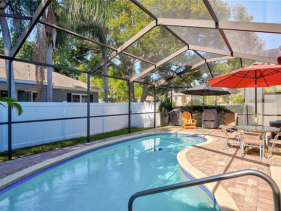 This adorable bungalow has all the sought after charm and appeal today's buyer is looking for. Looking out from the Anderson Windows in the living room you have a lush greens oasis right in front of you and a couple of ponds from the Belleair Country Club 17th hole. A four-bedroom configuration with a separate Mother-in suite or executive office, your choice how to use this bonus room. The entertaining begins on the pavers surrounding the refinished pool/patio area. There is a vinyl privacy fence for maximum privacy around this pool and birdcage. It's hard to imagine a better place to live than two blocks to the Belleair Country Club or a short 1/2 mile to the Pelican Golf Club, home of the LPGA in November. The bathrooms are all updated and light and bright. The wood floors in the living room and the fireplace are original and beautifully finished and kept. This spacious floor plan allows bedroom privacy by separating the 4 bedrooms over the length of the home. A full size kitchen with lots of granite counter-tops, wood cabinets and stainless appliances right in the center of the home with a door to the backyard fun. Home generator is newer along with the two full size A/C units and a split for the bonus room. Water softener for entire home included. This really is move right in ready.