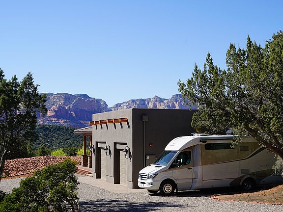 This BRAND NEW (revenue) home is situated on this rare 1.17 acre lot; nestled at the base of Lizard Head Mountain (it neighbors the Coconino National Forest). Completed in February of 2019, it was built with Sedona's famous mountain views in mind, with the large patios and oversized windows; you will enjoy unobstructed mountain views in EVERY direction! Mere steps from the property are hiking, biking and horseback riding trails that go on for miles in every direction. This Modern Sante Fe style home features upgraded appliances and finishes (including both quartz & granite countertops throughout). It's custom design is extremely functional and it's finishes where chosen to provide ultra low maintenance. The second bedroom resembles a hotel room (potential vacation rental suite), with an independent AC/DC unit, mini kitchen, it's own entrance and more. An AirBnB site is ready to be launched and the sale includes a professionally designed website (see: thepaintedlanai.com ) *Rarely does one find such a treasure as this; a new home with location, location, location! Notice the landscaping, not only is it low maintenance it's also VERY IMPRESSIVE! As you drive in, you'll drive over a stone bridge which unveils this stunning home and the AMAZING mountain backdrop! A block pathway surrounds the entire home; making way for easy and clean transitions from inside to out. According to the weather (and/or season), choose a patio or deck to lounge on and then on those cooler evenings you will surely appreciate the outdoor natural gas fire-pit as you watch the famous Sedona sunsets. This home also features a STUDIO or WORKSHOP space in one of the garage bays (the garage bays are separated). It has an independent AC/DC unit, additional lighting and electrical outlets, hot/cold water, a utility sink and a private entrance too. Do you have a RV or perhaps a visitor with a RV? No problem, there's not only plenty of parking and their are FULL - RV HOOK - UPS too. Do you need to store a utility trailer, boat and/or an ATV? There's plenty of room for that too! Also INCLUDED are: An in-line Nuvo water softening system. Fire suppression system throughout and LED lighting throughout. NOTE: Zoning of this property permits one more building *restrictions apply. NOTE: Zoning also permits horses. ***FOR MORE INFORMATION CONTACT Romi at 928-451-2657 NOTE: All furnishings and belongings (including vacation rental supplies) are also for sale. Asking 40K.