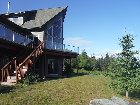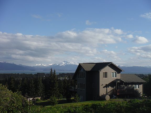 You will delight in the grandeur of this custom Beachy-built home with its spaciousness, privacy and sweeping views of Kachemak Bay. Designed by an artist, this prowfront tri-level home features the finest craftsmanship and amenities that Homer has to offer. The master suite with private sitting room, sound-proofed media room, office/studio and wrap-around deck make this a special place indeed. This is an incredible property and house that is located only 1 mile out East End Road, property abuts Spring Hill development's Green Space. Property: on 5+ acres that has 2 streams, with tons of Raspberries. 3 tier garden with fence. 40 x 70 gravel pad for Boats or for shop to be built Out Buildings: 10ft x 20 ft newly built Greenhouse. Newly built chicken coop. 12 Ft Yurt on back section House: Beachy Built. approximately 3500 sq ft house on 3 levels. 3 bedroom 3 bathroom. Large surround sound entertainment room. Cherry wood kitchen cabnets. Wood floors on the main level. 2 car large garage. Large deck with trex decking. Recently hooked up to Natural gas. Has Buderus Boiler, LP fireplace, and JennAir stove that are on natural gas. Central vac, venmar HRV, Biocycle septic system with lifetime guarantee. On Homer City Water.