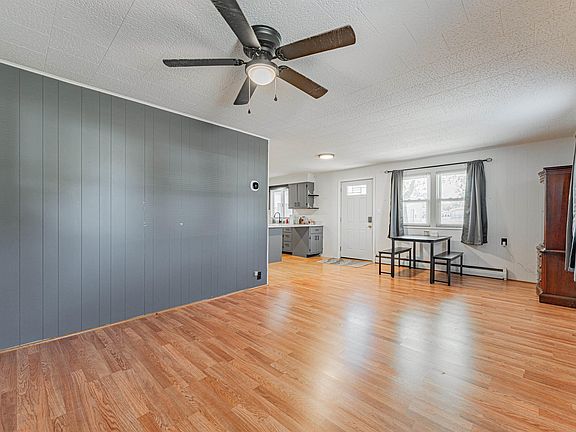 Ultra trendy and modern three-bedroom vinyl sided ranch style home with so much to offer at a practical price! The sleek interior boasts a bright and spacious 15X22 front facing living room with great floor space as well as laminate flooring, equipped eat-in kitchen host to a breakfast bar as well as a 5X6 adjacent walk-in pantry, classy updated full hall bath, convenient laundry/mechanical/mudroom area, and three nice sized bedrooms -- two with hardwood flooring -- one with an exterior access point and an adjacent walk-in closet. Property also features a two-car attached garage, newer front porch/deck, and various recent updates/improvements including exterior vinyl siding, vinyl replacement windows, architectural roof, added attic insulation, and an efficient boiler. Need appliances? They all remain here including washer and dryer. Motivated seller has priced this turnkey ranch style residential dwelling to move swiftly!