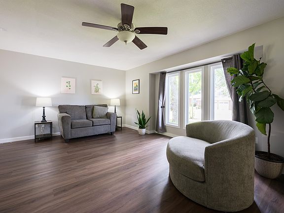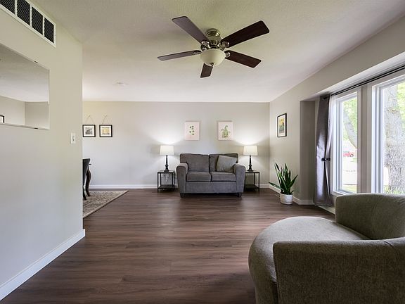 This house is situated among mature trees in the Oak Forrest addition. This house has a two-car attached garage, 3 bedrooms, and 1 bonus room. There are 2 full bathrooms and a half bathroom. As you step inside, you'll be greeted by the warm and inviting living rooms. The main level living room is complete with a cozy fireplace and sliding patio door that leads out to the covered patio. The other is up a few steps and is open to the dining room providing ample space for relaxation and entertainment. Also down on the main level is the laundry room with a toilet and sink, perfect for your guests. The kitchen is equipped with a lot of cabinet and countertop space, making meal prep a breeze. All of the kitchen appliances stay with the house. The peninsula island is opened to the dining room. The three bedrooms, including a master bedroom with a private bathroom, offer all new carpet and luxury vinyl flooring. The second bathroom is conveniently located near the bedrooms down the hall. The home also features a bonus room in the basement, perfect for a home office, playroom, or hobby space. The basement also offers additional storage and mechanicals. Step up and back outside to the patio and enjoy the beautiful mature trees that surround the property, providing shade and a sense of tranquility. The covered patio will be the perfect spot to relax, entertain, or enjoy an outdoor meal.
