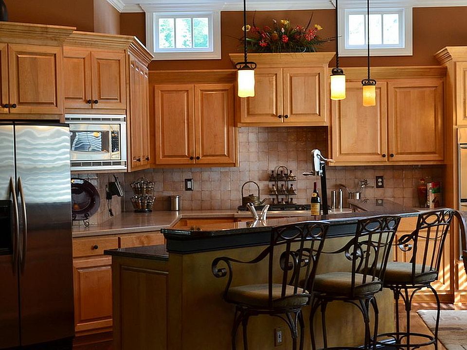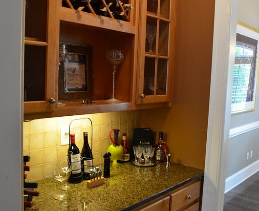 • Kitchen Features: Cabinets Stain, Pantry, View to Family Room, Stone Counters, Kitchen Island, Breakfast Room, Solid Surface Counters, Other, Wine Rack