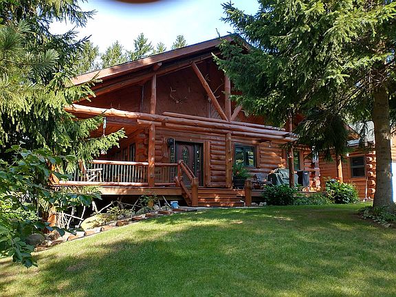 Full Log, 1 1/2 story, 3br 3ba, on mostly wooded 30 acres. Full walkout basement with space for two more bedrooms. Close to town yet private. High ceilings, many windows, open floorplan for an open airy feeling. Spacious rooms, large cedar lined walk-in closet, Deluxe large Master bath with heated floor, walk-in glass block shower, premium jacuzzi type walk-in tub, and bidet. Large fireplace/ furnace capable of heating entire home, or with the propane furnace. Oversized attached garage, 30x60 pole barn, small orchard, and gardens. A plethora of shopping, sports and cultural events, a casino, ski slope, and amazing beaches and hunting/fishing opportunities in the area. Buyers agents welcome-fee negotiable.