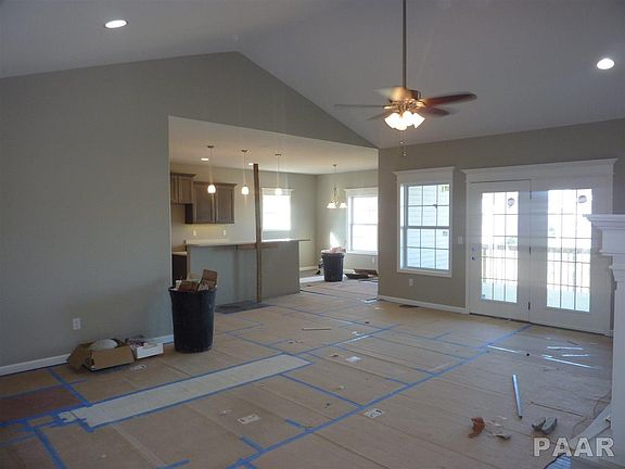 Open floor plan ranch on a walkout lot. Over 3000 sq ft, 4 bedrooms, 3 baths all with quartz and finished bsmt w 4th bdrm and family room. 3/4 inch birch hardwood floors on main floor with gas fireplace, kitchen includes all ss appliances, quartz counters and semi-custom cabinets. Master bath has all tiled shower and soaking tub, with large master bedroom and walk-in closet with trey ceiling. Laundry area has utility tub and custom lockers, 17x14 deck with covered area, 8 ft garage doors with extra storage, energy efficient home. Carpet can still be chosen. Grey color scheme w Grey cabinets