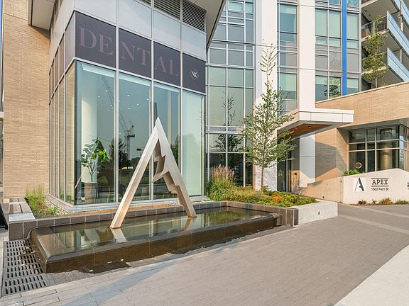 Considered the 'Pinnacle of Seylnn Village', this 2 bedroom, 2 bath suite in Denna's newest building, APEX, offers views from the city skyline to the North Shore mountains. This NW corner unit features an expansive balcony with gas hook up, floor to ceiling triple glazed windows, European cabinetry, Quartz counters and AC. . Premium AEG appliances are integrated into the stylish kitchen interior and an expansive island which offers great room separation from the living areas also offers a convenient spot for casual meals. This luxury tower boasts endless amenities including the Denna Club with its 25 meter lap pool, hot tub, steam room, sauna, party, meeting & media rooms and concierge service in the stunning lobby. Some photo's virtually staged. Court ordered sale.