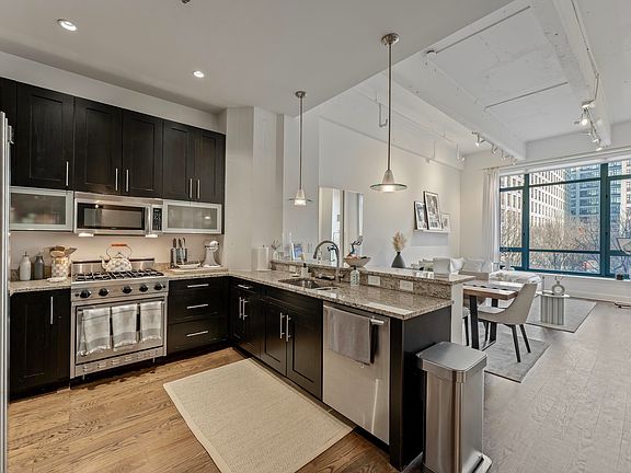 Modern 1 Bedroom + Den, 1 Bathroom, 1 Car Deeded Parking condo at Harborside Lofts. Characteristics of this condo include an open-concept living room and kitchen, 13' ft ceilings, and oversized windows with eastern exposure and views of NYC. The Chef's kitchen is outfitted with SS appliances, breakfast bar, Viking gas range, wood cabinets, and granite countertop. The functional den/flex room can be used as a nursery, office space, or as a guest room. The master suite includes a large walk-in closet, washer & dryer, and east NYC views. Additional features include central heat & AC, and hardwood floors throughout. The Harborside Lofts is a steel and concrete building with 24/7 concierge, shared rooftop with NYC views, 3 gyms, lounge, game room, an outdoor pool, and free shuttle to PATH. HOA fees all amenities, gas, and hot water. Sought-after North Hoboken location with direct access to NYC via bus, ferry, and shuttle to PATH. High Walk Score and just blocks away from Trader Joe's, fine dining, shopping, and more!