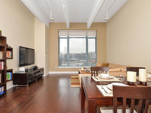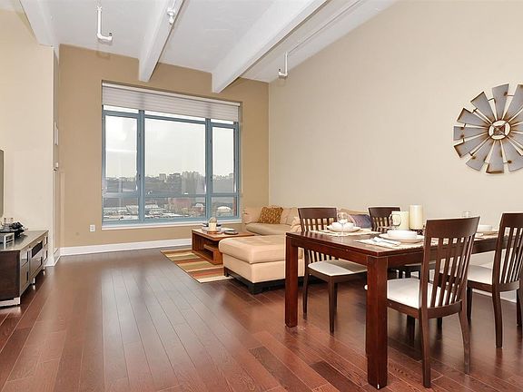 Beautiful 1Br 1Bath at The Harborside Lofts! Stunning hardwood floors throughout, top of the line chefs kitchen with custom cabinets, cesarestone countertops and high-end stainless steel appliances. Dramatic floor to ceiling windows, soaring 13' ceilings, tons of closet space. Beautifully landscaped waterfront walkway, common rooftop terrace/BBQ, 24 hr concierge, fitness center, residents lounge, adjacent park. Shuttle to the path and use of all amenities at 1450 Washington St. (Hudson Tea)