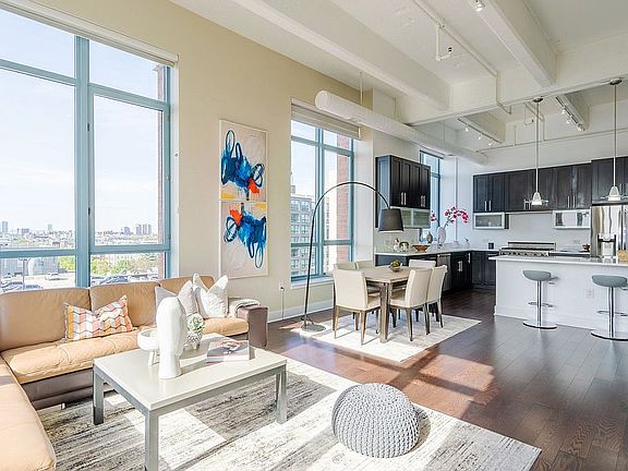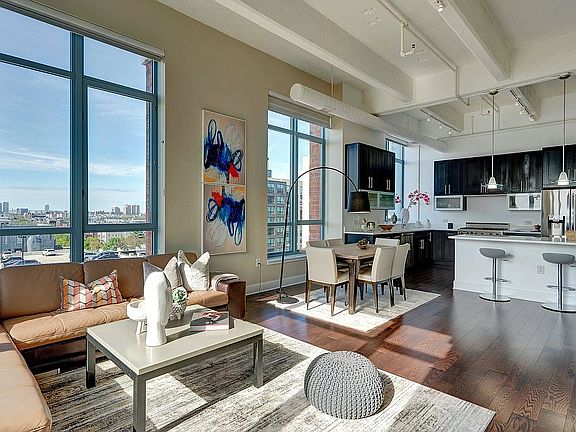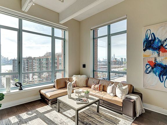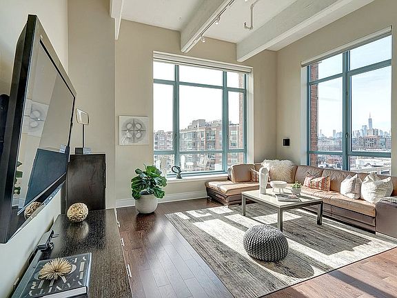 Open House by appointment only Sat & Sun May 22nd and 23rd from 1-3pm. Please call Francesco 201-410-3020. From the pages of the architectural digest this true Soho style loft is part of the Hudson Tea Waterfront Community, Hoboken's most exclusive boutique building and pure luxury at its best at Harborside Lofts. This amazing corner Southeast facing unit features 1812 sq ft 2 bedrooms + den, 2 baths, 13' soaring ceilings, incredible natural light from the over-sized windows. Open floor plan, expansive living and dining area is perfect for entertaining. Fully equipped gourmet chef's kitchen with top-of-the-line stainless steel appliances, 6 burner Viking stove, quartz countertops and center island. Bedrooms are on opposite sides for added privacy. Main bedroom features walk-in closet, en-suite bath with dual vanity, stand up shower and generous closets, a Den area can serve as an office, guest room or a 3rd bedroom. Hardwood floors throughout, washer/dryer in unit, central air and indoor parking complete this unit. Amenities include 2 separate gyms at 1400 Hudson and 1450 Washington St