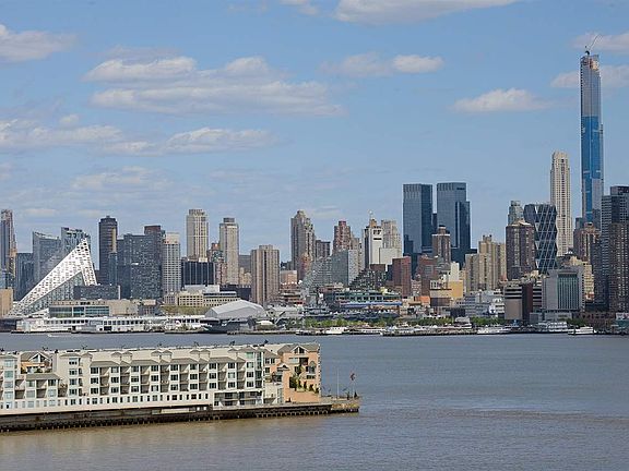 A rare opportunity to own this north/west facing true 3 bedroom corner loft in the coveted Harborside Lofts. Featuring NYC and cove/river views, this is the first in this line/layout to hit the MLS above the ground floor in 11 years! This loft's 7(!) oversized windows allows for an abundance of natural light. The open floor plan and tall 13ft ceilings makes this home feel even more spacious than its already generous sf. The loft features a very large living, separate dining area and a "suburban sized" kitchen with an oversized kitchen island. The gourmet kitchen comes with all high end appliances incl. 6 burner Viking stove, Sharpe microwave drawer, Miele hood, Bosch dishwasher and Miele refrigerator. There are hardwood floors throughout, tons of storage (incl. coat closet, linen closet and a large walk-in in master bedroom) Custom automated window treatments and custom closets throughout. Maint fee includes gas and hot water. One car garage parking included in the sale. Building and association amenities include common rooftop terrace with outdoor kitchens, 24 hr concierge, shuttle to path, 3 gyms, children's playroom, residence lounge and pool.