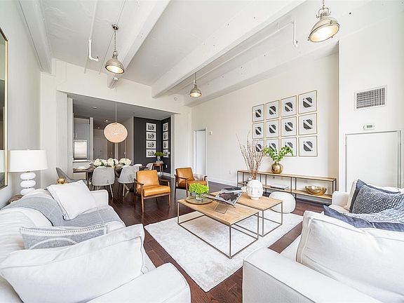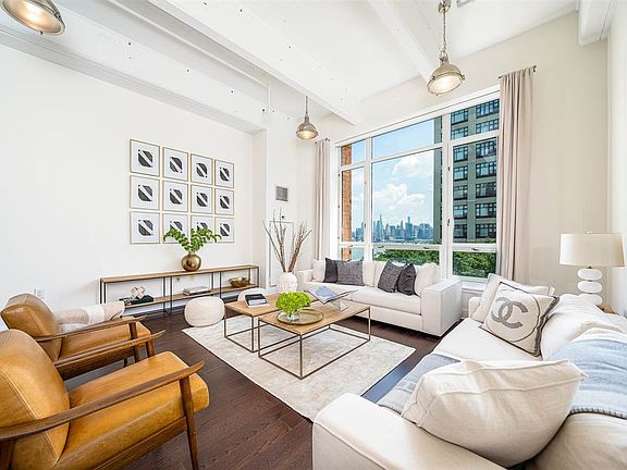 ***ACTUAL TAXES PER NJ TAX RECORDS ARE $14,645 FOR 2019. ZILLOWS TAX AMOUNT IS INACCURATE***Views, views, views. This large east facing loft features sweeping NYC and river views from all windows. Oversized living room, large master bedroom + massive 2nd bed/den (approx 14'x17'). 13' ceilings and oversized 9'+ windows floods this loft with natural light. An open floor plan makes this loft feel even larger than its already generous sf. Beautiful updated kitchen features all high end appliances (Viking, Bosch and GE Monogramme). There are hardwood floors throughout, tons of storage (incl. oversized coat closet, linen closet and walk-in in master bedroom) Custom Hunter Douglas silhouette blinds and custom closets. The apartment comes with one car covered garage parking included in the sale. Common amenities include rooftop terrace with two outdoor kitchens, 24 hr concierge, shuttle to path, 3 gyms, yoga room, children's playrooms, residence lounges and rooftop pool.