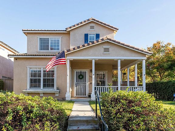 SOLAR PAID OFF BY SELLER! MELLO ROOS TAXES INCLUDED ON PROPERTY TAX BILL. VA LOAN ASSUMABLE BY QUALIFIED VETERAN (- EXTRA LOW INTEREST RATE.) This lovely home boasts a new kitchen, plantation shutters, relaxing front patio and your own gated back yard area for entertaining. The spacious upstairs lot provides plenty of room for kids to play and could be converted to a 4th bedroom or office area. This corner lot allows for wonderful sunlight throughout the home. Centrally located, you are within walking distance to schools and so much more. You're sure to enjoy strolling the spectacular sidewalks lined with trees. HOA fee includes common area maintenance, community pool, Night Guard at community gate.