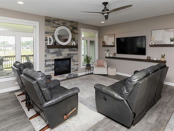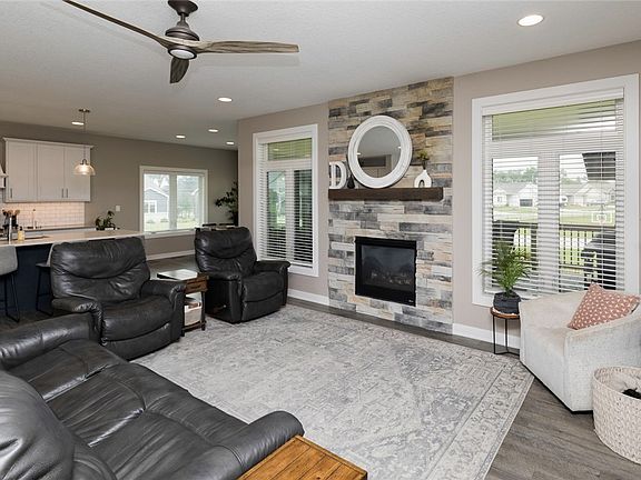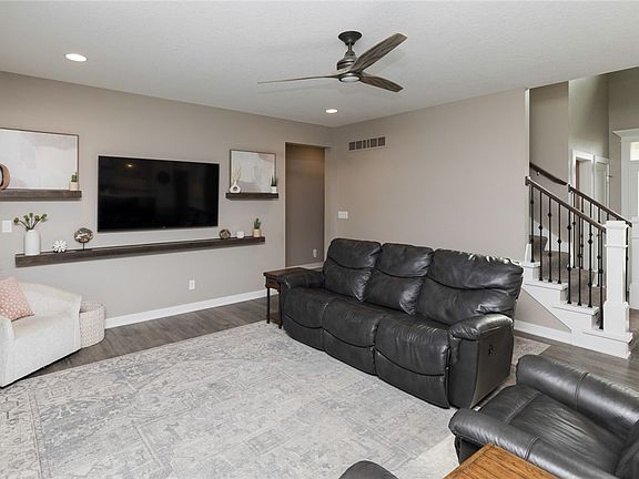 Welcome home! This 1.5 story home has been well maintained and ready for a new owner. The main level boasts a 2 story entry, office with glass doors, 9 ft ceilings, full stone fireplace, and tons of windows. Kitchen appliances stay with home and were recently updated in 2024 with a new gas stove/double oven. The primary suite has trayed ceilings, en suite bathroom with full tile, built-in closet shelving and flow through door to laundry room with storage. The second story has three generously sized bedrooms, with plenty of room for the kids to play. The basement has over 1100 sq ft of finish, 9 ft ceilings with wet bar, bedroom, bathroom and tons of storage. Outside you will find a covered deck with upgraded pavers, stamped concrete patio, basketball court, invisible fence for the pets and is fully irrigated. All information obtained from Seller and public records.