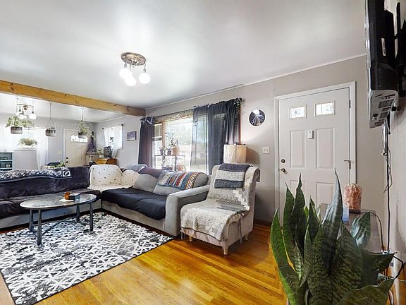 Sitting on a large corner lot this 3 bedroom ranch is set to impress! The inviting, landscaped path leads inside where you'll find an open living room with gorgeous hardwood flooring and rustic wood beam. The bright and airy dining area features low-maintenance flooring and great entertaining space. A large eat-in kitchen offers clean, white cabinets and a stylish, modern tin backsplash. Follow the hardwood floors down the hall and into the three spacious bedrooms, each with ample closet space. The shared full bath features bonus storage solutions. Just off the dining area you'll find a drop zone and convenient half bathroom. Outside, the fenced backyard hosts beautiful shade trees and a garden shed for extra storage. Schedule your private showing today!
