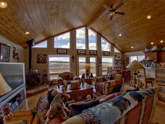 PRICE REDUCED! Great Views from this Like-New 3 BR, 3 BA mostly-furnished home. Greatroom, Family Room, & Garage BORDERING OPEN-SPACE & huge Ranch! Luxury furnishings await you & your guests with expansive 360 degree views. 7 stocked ponds, tennis court, & clubhouse. Gorgeous Kitchen with Island & Double-Oven, elegant Dining Area, large Master w/Bath, lower Family Room also with 2 Bedrooms & Bath. Wrap-around Deck & awesome Wood Stove are just icing on the cake. Just minutes from everything!