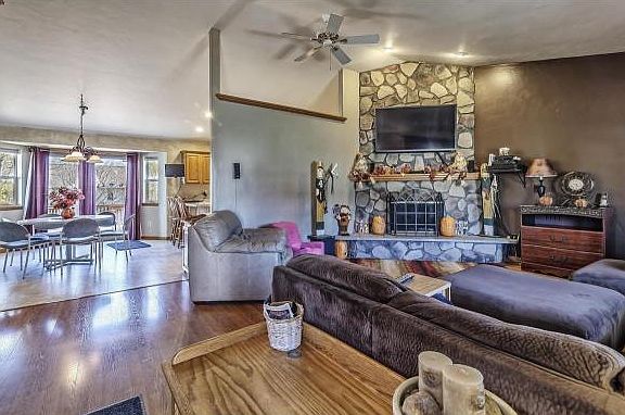 Spacious Howard ranch home on .30 acres. Living room features vaulted ceiling & fireplace. Kitchen offers snack counter & sliding doors leading to the 2 tiered deck. Master w/walk-in closet & private full bath. 1st floor laundry. Finished garage is heated, insulated & has pull down stairs to lighted storage space. Lg landscaped fenced yard w/newer firepit & playset. Sq ft per seller.