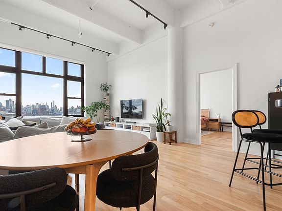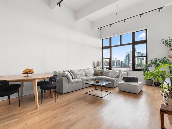 Welcome to Hudson Tea Unit 10I, a stunning 1,310 sq. ft. 2-bedroom, 2-bathroom loft unit that combines historic charm of the iconic Hudson Tea Building with modern sophistication. This apartment offers breathtaking, direct views of Manhattan that showcase the property's prestige. The interior features 13-foot ceilings that enhance the sense of space and light, complemented by beautiful hardwood floors throughout the living area and both bedrooms. The fully upgraded kitchen equipped with stainless steel appliances, sleek new cabinets, and a breakfast bar. Primary suite with en suite bathroom & custom walk in closet, 2nd bedroom with custom closet, custom shades throughout the unit and an in-unit washer and dryer. One parking spot included! Residents enjoy access to exceptional amenities, including a 24-hour doorman, state-of-the-art fitness center, children's playroom, and a resident lounge. A private shuttle service to and from the PATH makes commuting a breeze and the ferry to NYC is just steps away.
