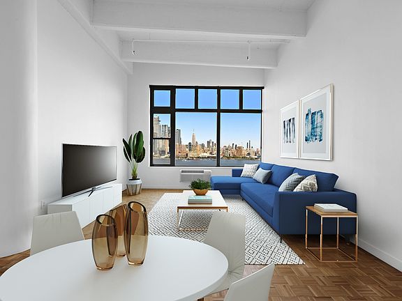 A Penthouse Hudson Tea Loft with unobstructed panoramic New York City Skyline and river views from your 11ft windows and soaring 14ft ceilings. Located within the historic Hudson Tea building, this open living concept home offers nearly 1400 sqft of living space, 2 generous sized bedrooms with walk-in closets and 2 bathrooms. Newly updated amenities: fitness center, residence lounge, cafe and shops on site, full time concierge, boardwalk, ferry at your door, shuttle to the path. Deeded Garage Parking included.