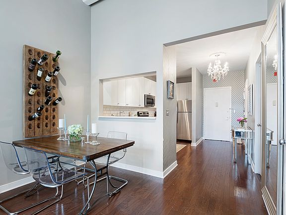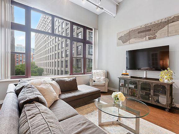 Move right in to this beautifully renovated loft apartment boasting 14 foot ceilings and large picturesque windows allowing for tons of natural light. This rare layout is 740 sq feet and has a separate bedroom alcove featuring gorgeous French doors which affords more privacy than the typical Hudson Tea studio layout. The spacious kitchen has plenty of cabinetry and updated with quartz countertops, a white subway tile backsplash, stainless steel appliances and new lighting. Large, open layout affords separate living and dining areas. Bedroom alcove has two generous closets and can comfortably allow for a queen-sized bed and furniture set. Additional highlights include hardwood flooring, in-unit laundry, track lighting, foyer chandelier, ceiling fan and soundproofed wall. Building amenities include 24-Hour full-service concierge, state-of-the-art 3,000 square foot Fitness Center with Peleton bikes and evening workout classes (Barre, yoga, HIIT, etc.), Resident's Lounge, Children's Playroom, cleaners, Choc-o-Pain and a private shuttle with app tracking to the PATH. 5 minute walk to either NY Waterway ferry or NJ Transit buses. Available April 1st.