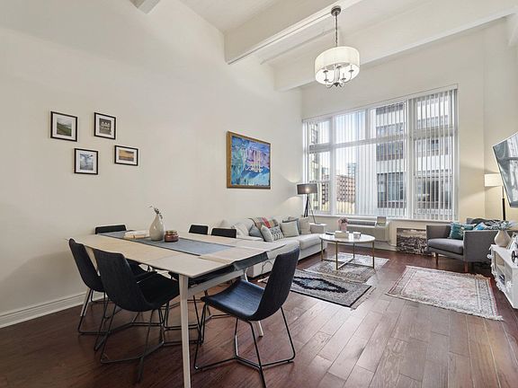 Don't miss this spectacular 1 Bedroom, 1 Bathroom residence at the iconic Hudson Tea Building on the Uptown Hoboken Waterfront Promenade. This generously apportioned 1,000 SF home is the largest one bedroom layout at Hudson Tea! This incredible unit boasts 13' ceilings, hardwood floors throughout, in-unit laundry, and a large spa-like bathroom, and expansive windows that flood the unit with natural light. The large chef's kitchen features an open layout with stainless steel appliances, 42" custom cabinetry, and granite countertops. The expansive living room and dining room areas are perfect for entertaining. The oversized primary suite easily accommodates a King size bedroom set, and features a large walk-in closet. Enjoy the incredible amenities of Hudson Tea, offering a full suite of services including a 24-hour concierge, a nearly 3,000 SF gym with Pelotons and included fitness classes, opulent resident's lounge with a private dining room that features Midtown views, a new free teleworking space, redesigned children's playroom, 3 high-speed elevators, free shuttle to/from PATH, dry cleaner, Choc O Pain French cafe onsite, and resident's courtyard with fire pit. Rental parking is a breeze at the LAZ garage across the street at 1450 Bloomfield. Commuting is a breeze with the Uptown ferry and bus just one block away, or take the building's private shuttle to the PATH. This incredible home offers the best of Uptown Hoboken, just moments from lush parks, fantastic restaurants, shops, nightlife - and of course, Hoboken’s famed Waterfront!
