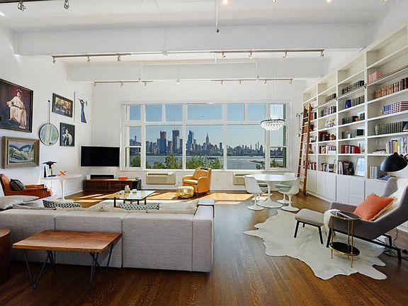 Expansive renovated loft in the Hudson Tea Building with dazzling unobstructed NYC views. Stunning 1374 sq foot condo features 13' ceilings and exposed concrete beams. This one bedroom, two bath loft has been meticulously renovated, and is easily converted back to a two bedroom. Nearly 600 sq ft sprawling living and dining room has a bookcase with library ladder and lacquer accent wall, framed by the massive picture windows. Open kitchen features Viking, Liebherr & Bosch stainless appliances, white quartz countertops, 4 person breakfast bar, recessed and under cabinet lighting. Spacious oversized bedroom with 2 large closets. Luxurious en-suite master bath has Porcelanosa tile and vanity, and frameless glass shower. New heat pumps, refinished hardwood floors, laundry in unit and automatic window blinds. Full service waterfront building amenities include doorman, fitness center, resident's lounge, childrens' playroom and Shuttle to Path. One garage spot included.