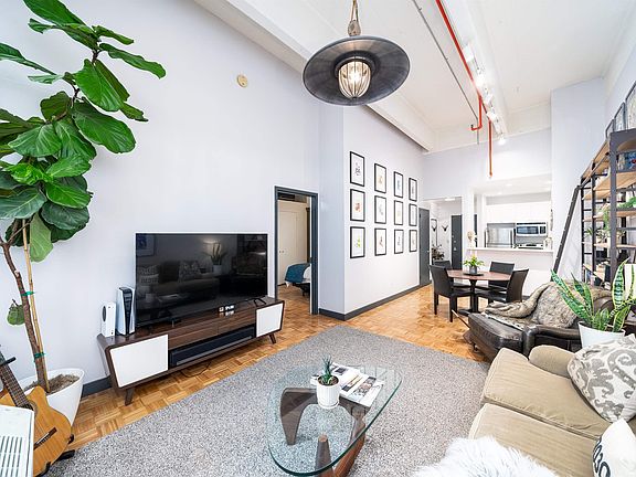 Indulge in unparalleled luxury living in this uniquely renovated Hudson St. 1 bedroom 1 bathroom loft Residence with tranquil courtyard and Hudson River Cove Views & 1 car parking space included at the iconic Uptown Hoboken waterfront Hudson Tea Building. The open concept kitchen includes plentiful 42 inch white shaker style cabinetry, an all stainless steel appliance package, and breakfast bar that overlooks the dining and living area for seamless entertaining. The spa like bath includes an upgraded, rarely available custom double vanity & additional linen storage, tile flooring with full-size laundry in-unit. The king size bedroom includes a dedicated, working from home office & gym area with a separate two zone, PTAC heating and cooling system and plenty of extra custom built in closet space. With well-maintained, vintage parquet throughout, designer lighting, and fans, soaring 14 foot ceilings and 10 foot picture window, an entryway coat closet, plus parking included this upgraded one bedroom residence at a premium luxury address surely checks all the boxes. The luxe amenities of Hudson Tea, offering a full suite of services including a 24-hour concierge, nearly 3000 sqft gym with Pelotons and included fitness classes, stunning resident's lounge with private dining room offering Midtown views, a new free WFH space, redesigned kid's playroom, 3 high-speed elevators, free shuttle to/from PATH, dry cleaner, Choc O Pain French cafe onsite, and resident's courtyard with fire pit perfect for alfresco dining. Additional amenities include bike & add'l on site resident's storage. Located directly on the Uptown Hudson River waterfront, enjoy proximity to neighboring Harborside & Maxwell Parks, boutique shopping, outdoor eateries, Soul Cycle, Pilates, spas, Cork Wine shop, and easy access to transportation including the Direct 14th St Ferry to Midtown & WFC. With Trader Joe's, Whole Foods, farmer's market, and Urban Market groceries coming soon, every convenience is at your doorstep.
