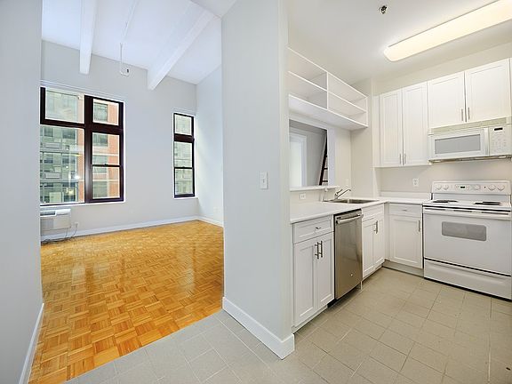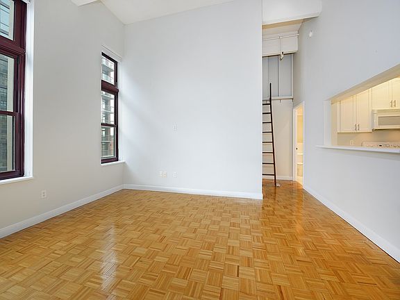 South facing true 1bed/1bath at the Hudson Tea, a full service converted loft building. The unit features 13 ft ceilings, custom Hunter Douglas blackout shades, completely renovated bathroom with limestone floor-to-ceiling tiles, a high-end European rainfall shower, heated towel rack, and Toto sink. A custom-built oak ladder leads to the large storage space. The building features 24 hour concierge, residents lounge, fitness center, shuttle to path and children's playroom. Enjoy parks, river walk. Steps from ferry and NYC bus. Parking available for rent. Available for immediate move-in or Feb 1st.