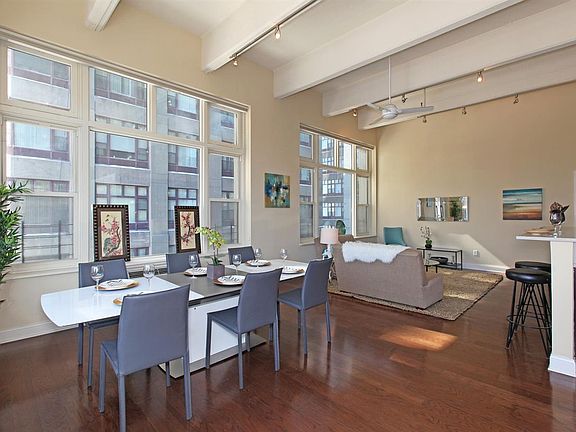 A Hoboken rarity perfect for both entertaining and families. Don't miss this opportunity to have a wide open living space With over 1400 sq. ft. and lofted ceilings, this home is perfect for dinner parties or kids parties. It's upgraded with an entertainer's top end kitchen that is open to the living and dining rooms. The western exposure accents the custom lighting and paint to create an upscale home within an upscale property. parking too. Bldg amenities include; a doorman, shuttle to PATH