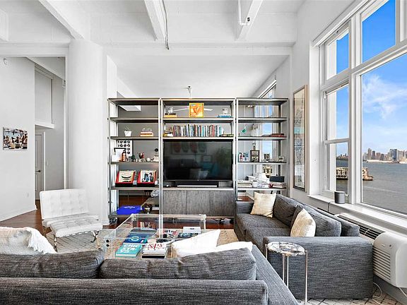 Experience unobstructed NYC views from your expansive Artist Loft that was converted from a 2 bedroom / 2 bathroom located in the highly coveted Hudson Tea Building. This residence boasts 14' ceilings accented by exposed concrete beams and giant sun drenching loft windows. The open floor plan is ideal for entertaining. Enjoy an open concept chef's kitchen complete with Viking Range, Liebherr Refrigerator and 4 person breakfast bar. The over-sized bedroom area with sound proofed walls creates the feeling of a retreat within a retreat. Top of the line hardwood floors and 1 car parking included. Building Amenities include 24 Hour full service concierge, state of the art Fitness Center, Resident's Lounge, Children's playroom, on-site Coffee Shop, Dry Cleaner, and private shuttle to the Path.