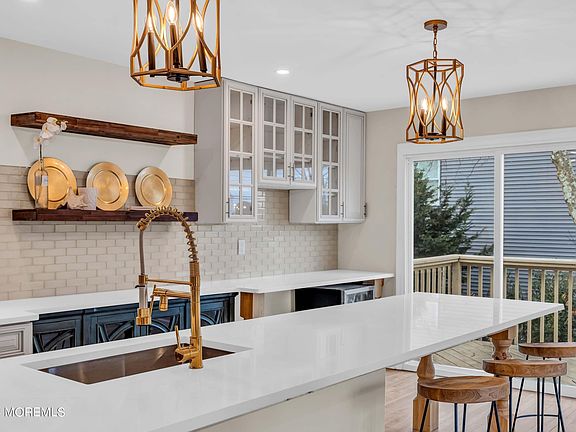 Welcome to Hyacinth Pl in Point Pleasant. This completely renovated home offers four bedrooms and two full baths. Hardwood floors throughout top floor. Stunning kitchen with quartz countertops with gold veining, SS appliances with oven hood and wine cooler. This is the perfect kitchen for entertaining. Gorgeous backsplash is a beautiful focal point along with the floating shelves and glass cabinets this kitchen offers. Bathroom has double sinks with quartz and mirrors with shower displaying gold accent features. All bedrooms are hardwood. Bonusroom or in-law suite has a fireplace and private bath. Laundry room has new W&D Home features new roof, HVAC, AC replaced 12/2023. Come see this beautifully renovated home. Deck has views of the Beaverdam Creek. Close to the beach.