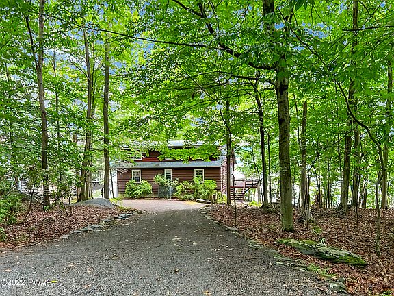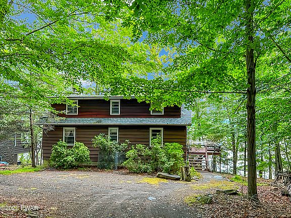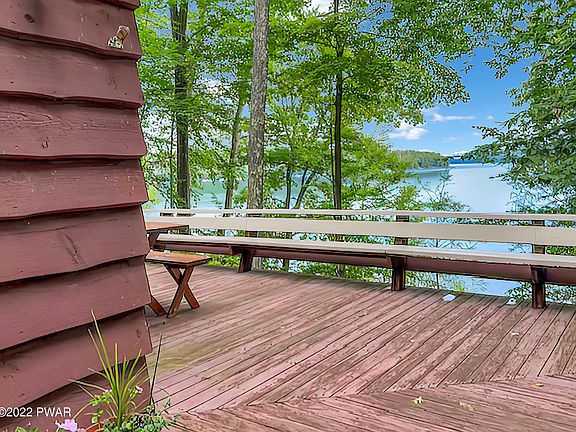 LUCKY LAKE FRONT CHALET! Enjoyed for decades by the same family! Lovingly maintained. Located in one of the most Prestigious Communities on Motor Boating Lake Wallenpaupack! Included in sale: garage/boathouse on additional adjacent lot. boat dock, and stock ownership in 350 private acres adjoining this property & surrounding the community. Hike/4 wheel on groomed trails. House has 3 bedrooms, 2 baths, plus large sleeping loft. Beautiful woodwork & hardwood floors throughout. Vaulted ceiling, combo kitchen/dining area open to living room w/stone fireplace. Lots of light, water views & decking. Walk out lower level recreation & utility area can be finished for your future needs. Ample parking at both house and garage areas. Commutable distance from NYC & major metro areas. See Virtual Tour, Beds Description: 1 BED 2nd, Beds Description: 2+Bed1st, Beds Description: 1 BED 2nd, Baths: 1 Bath Level 1, Baths: 1 Bath Level 2