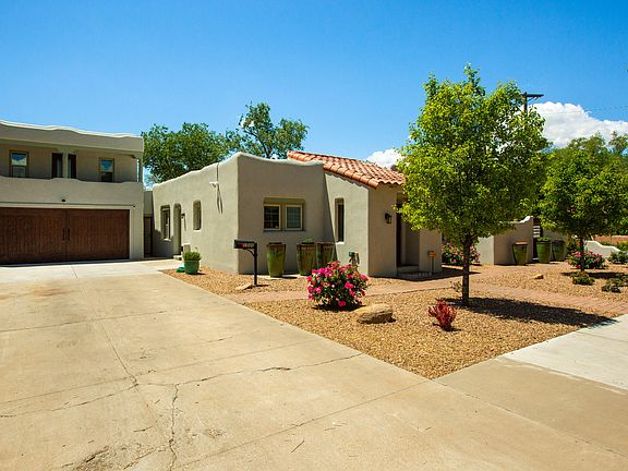Immaculate 1926 Adobe home in the Spruce Park Historical District. Located near UNMH, UNM and Presbyterian. Nothing has been overlooked. Beginning with beautiful white stucco (2022), roof (2022), custom crafted exterior and garage doors, hardwood floors, and updated stack stone fireplace. The primary suite offers a walk in closet and renovated bath. The main bath offers a refresh with added storage. The separate guest space with outside entrance offers privacy with half-bath and walk out balcony. In addition to the finished basement a half-bath has been added. Stainless steel appliances, granite countertops and Mahogany cabinets make up the beautiful kitchen in addition to the outdoor entertaining space.