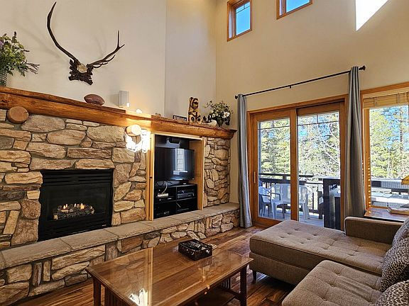 Only a block from the chairlifts and Mammoth Mountain's Eagle Lodge, you’ll find this top floor 3BD+2BA turnkey condo at Mammoth Green! This gorgeous, fully furnished, corner-unit home offers an open floorplan that seamlessly flows between the living room, dining area and kitchen. The impressive 18' ceilings in the main living area with the extra windows and 2nd balcony in the dining room bring in tons of natural light. This end unit has only one common wall and features upgraded, hand-scraped hardwood floors throughout, a rustic gas log fireplace with a cozy natural stone hearth, a fully equipped kitchen and tasteful craftsman furnishings & decor. The covered deck off the living room looks out into the forest, fairway and mountains, making it a perfect place to relax amongst the pines while enjoying the views and serenity. Two guest suites on the main floor, a washer/dryer and a guest bathroom complete the main living level. The entire top floor is dedicated to the primary suite, where you'll find a large en-suite bathroom, reading nook, total privacy and treetop views from your own Juliet balcony. The entry/mud room on the ground level has ample storage and is perfect for shedding those layers and dropping your gear before heading up to the main level. The full amenity complex is situated along the 3rd fairway of the Sierra Star Golf Course and is also close to hiking and biking trails, open meadows and the free shuttle stop that can take you all around Mammoth, to the Village, downtown, the Lakes Basin and more. You'll appreciate the private underground parking garage that has an owner's ski locker room and a secure bike storage room, as well as the beautiful outdoor pool, jacuzzi, patio and BBQ area. One of the few HOA's that include unlimited propane (main heat source) in the monthly dues. Nightly rentals are allowed. Call agent for more info, rental income details or to arrange a showing today!