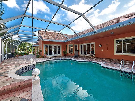 Calling all Equestrian and Golf lovers! This gorgeous custom built 5BR,4BA,3Car garage Cul-de-Sac home is a MUST SEE for you! Located in the sought-after gated community of Lakefield West. Premium private views of 12th tee of The Wanderers Golf and Country Club. Custom Brazilian Cherry solid wood double door with wrought iron detail welcomes guests. This 3-way split home has been meticulously cared for & upgraded by original owners. IMPACT GLASS Doors & Windows throughout. Crown molding & designer accents abound. Granite, 40'' cabinets & SS appliances in large open kitchen. Entertain on the huge screen-enclosed, paved patio & lanai offering an inviting pool with water feature. Enjoy tropical fruit from your own trees! A-rated schools, low HOA fees & close to equestrian activities.