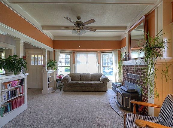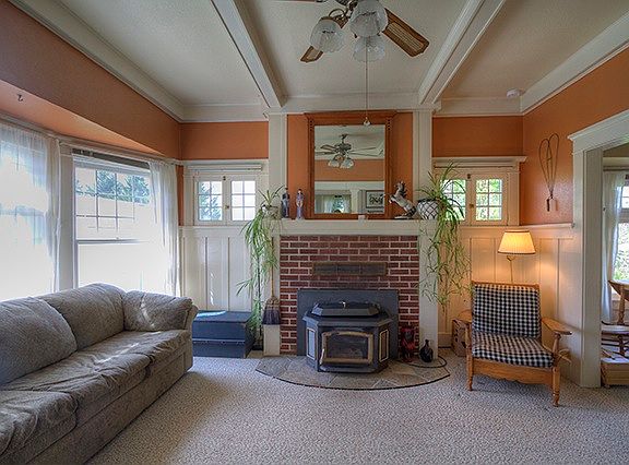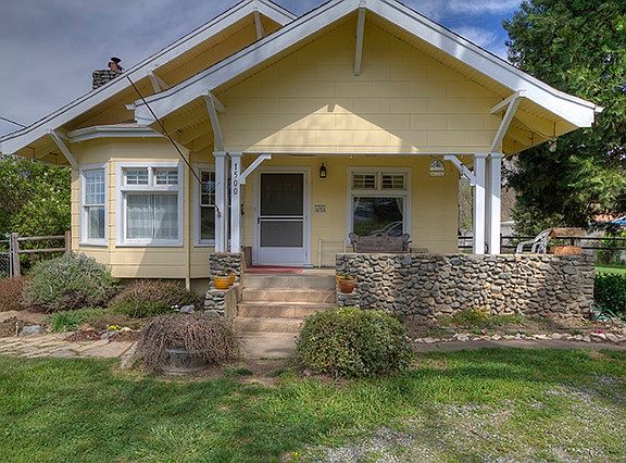 You will fall in love with the character of this 1940's Craftsman home. This beautiful property sits on 1.35 acres which backs to Louse Creek with irrigation rights, Fruit Trees, Fenced Pasture, Horse Stalls, Outbuilding, new oversized Detached Garage. Home is in excellent condition, has lots of natural light, high ceilings, lots of built ins, double-paned windows and newer interior paint. Kitchen is bright and laid out well. There is also a den which can easily be used as a third bedroom and also has a functional basement. Stone patio with a sink is great for entertaining. Property has free city water. Buyer to perform their own Due Diligence.