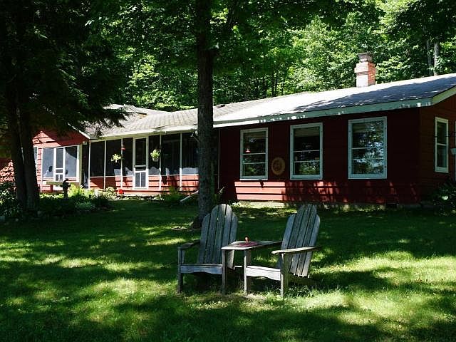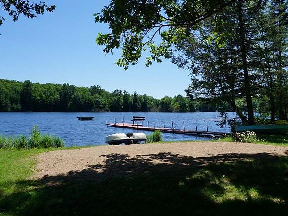 Privacy and seclusion! Nestled deep in the woods of a seven acre parcel you will find a very private setting for this two bedroom two bath four season home. A large screened porch gives you a great view of Broken Bow lake with two hundred twenty five ft of sand frontage with a sand beach area for the kids or grandchildren to enjoy. The scenic shore line would be great for canoeing or kayaking. There is a 28x24 garage for storage plus a 18x12 bunk house for overflow guests. Build trails through the woods for hiking or ATVing. Gather around the fire ring at night and build those long lasting family memories. Come up north for snowmobiling or ice fishing in the winter then gather around the fireplace in the den.