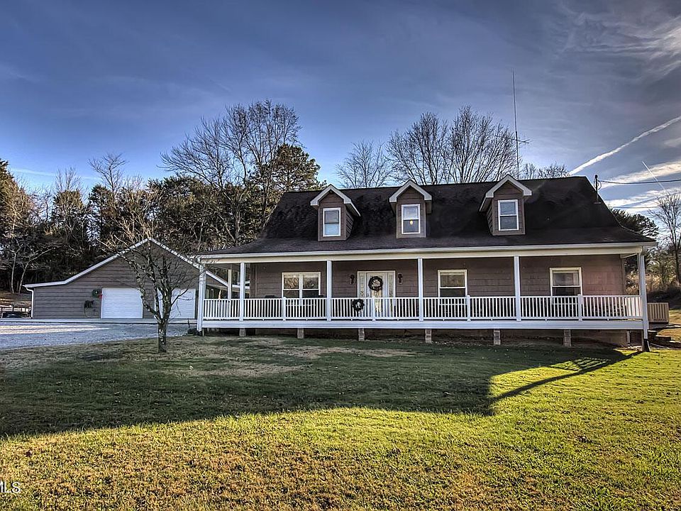 Charming home on 1 ac. in the country, no restrictions. Inviting wrap around porch, great room w/gas log fireplace opens to large kitchen w/gas cook-top in the island. Hardwood floors thru out the main area on main level. Three bedrooms on main. Master has two walk in closets, walk in shower, two vanities and access to the back yard. Upper level has fourth bedroom and 3rd bath and very large family room with gas log fireplace. Located in the country but very close to all the amenities of Lenoir City or Downtown Loudon. Large two car garage, separate workshop, carport & concrete parking pad for your boat or motorhome. Very level parcel. Other features are whole house generator, central vac, composite decking, covered breeze way to garage, tankless water heater 1 yr old, HVAC 1 yr old.