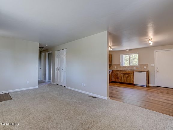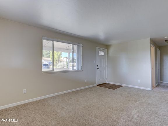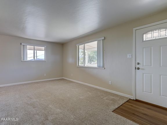 WOW!! What a cute home! Open floorplan, 2 bedrooms (one bedroom has large separate sitting area), 2 baths ~ completely updated throughout. Neutral interior. Situated on large corner lot, fully fenced, flat usable yard and plenty of space for RV. One extra high carport for car or RV. Great covered front porch with mountain views. Includes all appliances. Roof four years old. All paved roads to the property. Close to both Prescott and Prescott Valley amenities.