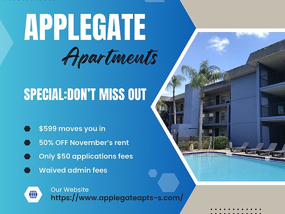 - Special offer! Move-in by 10/31 for $599 and receive 50% OFF of November's rent. $50 Application fee and waived admin. fee.Expires October 31, 2025