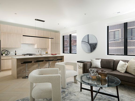 LAST REMAINING UNIT - Designed by the award-winning architects at Booth Hansen, 1500 N Wieland Street is a stunning new-construction, luxury boutique elevator building in the heart of Chicago's Old Town neighborhood. Located on a highly sought-after, tree-lined stretch of Wieland Street, the brand new building's brick and glass facade complements the character of the neighborhood. And with just seven units in total, each featuring best-in-class fixtures and finishes, privacy and style are guaranteed. This 2nd floor unit is a gorgeous 1100-square-foot, two-bedroom, two-bathroom residence that begins with a handsome entryway, including a spacious coat closet. The entry links to an open-concept living and dining space that's flooded with natural light, west exposure and beautiful herringbone flooring. The custom chef's kitchen is a showpiece - featuring soft-close cabinetry, quartz countertops that continue into a seamless backsplash, a large dine-up island, luxe lighting, and professional-grade LG appliances. The polished primary bedroom is a great size and boasts a large window, two Elfa organized closets (including one walk-in), and a design-forward en-suite bathroom with dual vanity and glass-encased shower. The secondary bedroom also has Elfa organized closets and an en-suite bath with a tub and shower. This split bedroom floor plan is desired and functional for alll. Additional highlights include custom shades, in-unit laundry, embedded USB outlets, a Nest thermostat, Keyless ButterflyMX app based intercom and door lock system with elevator access control, heated sidewalk entry, CCTV Perimeter security and Xfinity internet ($100/month). Parking space available for $300/month. Steps from Lincoln Park's green spaces, the lakefront, and all that Wells Street has to offer, 1500 N Wieland Street is the perfect blend of turnkey luxury, convenience, and architectural integrity.