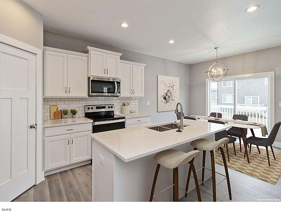 Move right in to this immaculate ranch on a large corner lot. Ideal location near Heritage Park, elementary school and sports complex. You are greeted with LVP floors in the entry, a drop zone off the garage and a spacious living room with a tray ceiling and fireplace. The sparkling kitchen offers a center island, subway tile backslash and a walk-in pantry. All appliances stay including the washer and dryer. Relax in the master suite with a walk-in closet connected to the laundry room, private bath with dual sinks and a gorgeous, tiled shower. On the other side of the house there is an additional bedroom and a full bath. The finished basement beats the competition with daylight windows, a large family room, bedroom with a walk-in closet and a full bath. Enjoy the outdoors from your deck. Other great features include a 3-car garage, fully fenced yard, and a massive storage area. Builder warranty transfers and good through April of 2025. Welcome home!