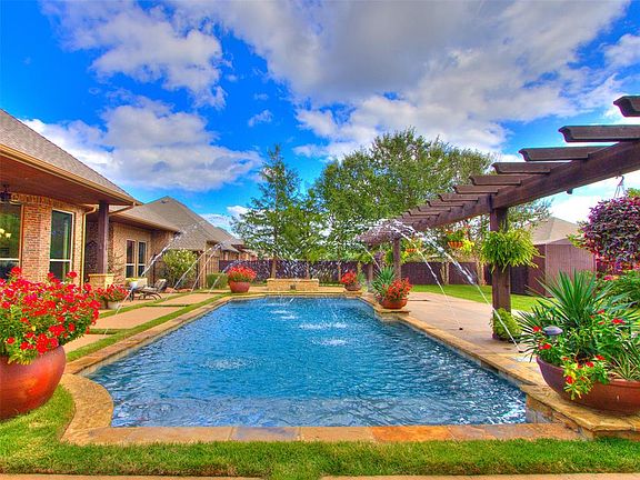 Enjoy movie nights in the bonus room or entertain effortlessly in the kitchen and living areas enhanced by surround sound. Additional highlights include real hand scraped hardwood floors, a well equipped laundry room with sink, and a 3-car garage with cabinets, granite countertops, shelving, a generator, and a storm shelter. The backyard is an entertainer’s paradise with a stained and stamped concrete patio, outdoor kitchen with a Green Egg, and dual ceiling heaters for year-round enjoyment. Relax in the heated inground gunite pool featuring a tanning ledge, water jets, built-in benches, and a fire feature. Thoughtful upgrades add value and peace of mind, including spray foam insulation, a 2 year roof and gutters with leaf guard, 2 year wood fencing, front and back sprinkler systems, extensive outdoor lighting, lush landscape and a custom built storage shed. This home truly has it all—style, space, and top-notch amenities inside and out. Don’t miss your chance to make it yours!