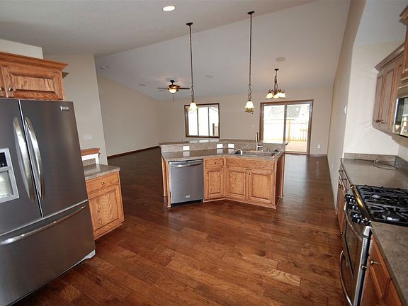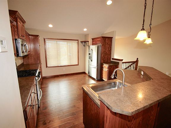 Here is an absolutely beautiful, 2,898 sq/ft, 4 bedroom, 2.5 bathroom home that is 100% turn key living! This home is found next to a quiet cul-de-sac, tucked in on nearly a quarter acre corner lot in the desirable Eagle’s Landing development. Upstairs you will find a large, open kitchen with beautiful wooden cabinets, a large island, and an abundance of natural lighting. The master bedroom is very spacious, has a BIG walk-in-closet, and an attached master bathroom with a linen closet. The deck is good sized and ready for your relaxing evenings in this quiet part of town. The daylight basement is huge and built for entertainment! There are hard wired speakers throughout the house and on the deck that tie in with your entertainment system. Save yourself from yelling to the basement with the intercom system that allows you to communicate back and forth. The 3 stall garage has a floor drain, is fully insulated and sheet rocked, plumbed for your natural gas heater, and has plenty of room for your vehicles and toys. Enjoy the ease of watering this large yard with in ground sprinklers. This property has been very well maintained and you won’t want to miss out on this one. Give your REALTOR a call and come check this place out!
