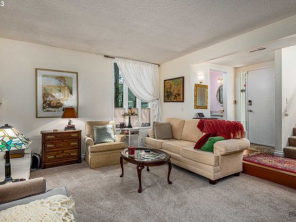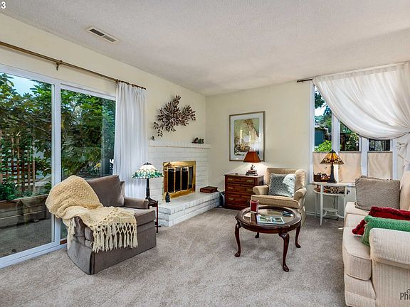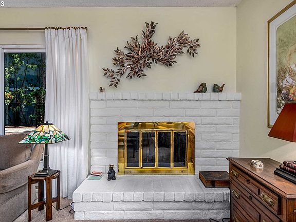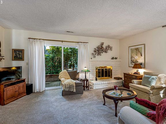 This home has unusual character and three patios and deck bordering common areas in the back of Oak Park's parklike grounds with a view of tall trees, birds and squirrels. The townhouse has light on 3 sides and lovely outdoor spaces. The living room opens onto a large patio, with fireplace and french doors stepping up to the dining room with a second slider to the patio. The kitchen and entry have newer luxery vinyl flooring, a third patio door opening to another fenced patio, The appliances are stainless. Kitchen countertops are quartz. On the way upstairs there is a very long window on the landing, bringing the outdoors in. With excellent separation of space full bathrooms are at both ends of the upstairs. Laundry closet is upstairs. Carpet was replaced in 2018, tile in shower in primary bedroom in 2019. Sinks, faucets and toilets all replaced. New heat pump 2020. HOA has a swimming pool, party room and saunas. Located just under 1 miles from Sheldon Plaza, 1 1/2 to Delta Oaks, Oakway Center, Oakway Golf Course, and minutes from Autzen Stadium, University of Oregon and Valley River Center, a very convenient location! Seller is a licensed Realtor in State of Oregon.