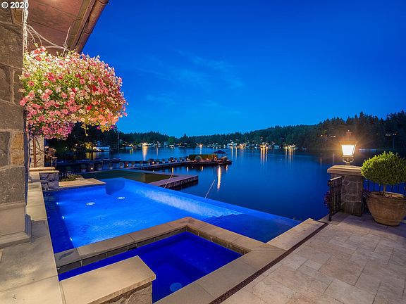 The VIP lifestyle beckons in Oregon's showcase custom waterfront estate, offering miles of lake views & outstanding craftsmanship including slate, basalt & copper exterior detailing, elevator, grand scale architecture & in-home 2 lift boat house.Revel in the private billiards hall, gym w/sauna,theater & opulent bedroom suites.Walls of glass doors open to pristine terraces w/infinity pool & spa,boat dock,lakefront putting green & island fire pit.Coveted Oswego Lake water sports at your back door!
