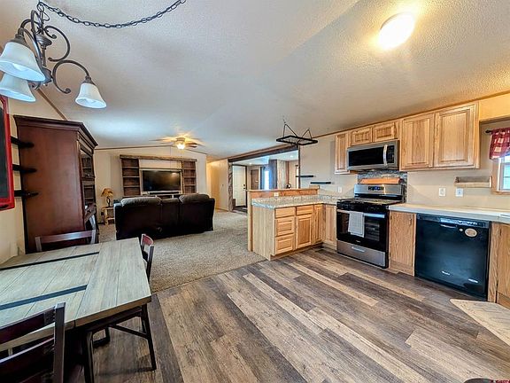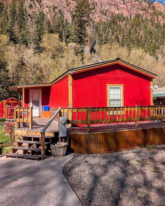 The real affordable living in Ouray is here. This four bedroom, two full bath mobile home was built in 2001 with 1,280 square foot and is located just a little north of Ouray on Oak Street. The owner has installed some new tile and good carpeting along with a custom built in entertainment center. He also built a mudroom to take your shoes off when entering. The appliances are very nice. Some almost brand new. The deck is large and has great views of the mountains. This place is in Swiss Village mobile home park which is currently under contract. The residence of this park have band together to purchase the land their homes are on. You will be a part of this organization. When this closes the mobile home park is yours and your neighbors, collectively. There will be restrictions on the park and you must qualify a few different ways. The park is owners occupy only, you can not rent your home out. This is a really good opportunity to own your own home and live in beautiful Ouray, Colorado!!
