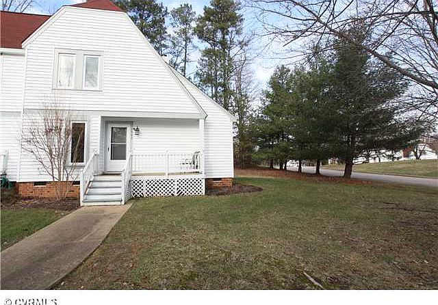 End Unit Townhome with 3 Bedrooms, 3 Full Baths. Includes a first floor bedroom/Office which has 2 closets and access to full bathroom. Kitchen features Ceramic Tile Floor, Electric Stove, Dishwasher, and opens to Dining Area and Living area. Living area with wood burning fireplace, closet and sliding door to deck. 2 Additional Bedrms on the 2nd Flr each with full bath. 2nd Floor Laundry rm with extra storage. Special upgrades includes vinyl windows, vinyl siding, upgraded light fixtures, and attached storage. Great location off Lucks Lane and close to 288. Great Chesterfield Schools.