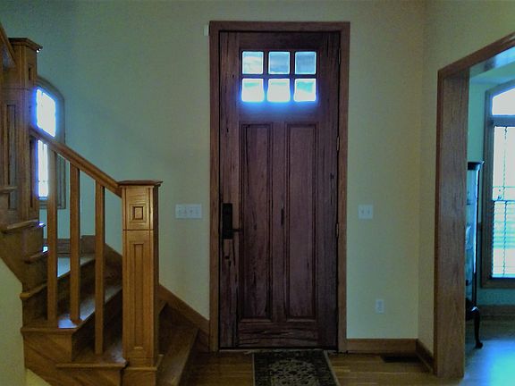 New roof, new granite in kitchen, new completed road! Country living and close to town! Large open layout, craftsman style with lots of living space! Beautiful yard with lots of trees. Laundry rooms on two levels, large bathrooms, large master suite. Large deck off back and a safe room in basement. Bar/kitchen in basement with large living area. Paved driveway, pasture is fenced and cross fenced. New cooktop, dishwasher, sink and disposal. Deck recently stained. Great family home! School bus stops at house driveway.