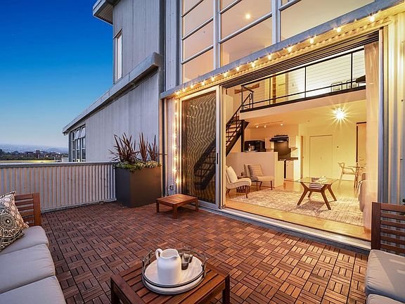 Welcome Home to a magnificent and rare penthouse loft located in the coveted Emeryville Warehouse. This modern 1 bedroom, 1.5 bath penthouse features an open concept floorplan with soaring ceilings and amazing indoor/outdoor flow. The living room offers floor to ceiling windows, and an expansive sliding glass door that leads to a spacious, private deck with amazing views and dramatic sunsets. Other features include stone counters in the kitchen, stainless steel appliances, breakfast bar, hardwood floors, vaulted ceilings and in-unit laundry. The mezzanine level includes a large bedroom, office/den area, custom closet, and a full bath with double sinks and luxurious double shower. The Emeryville Warehouse is conveniently located close to the bustling shops and restaurants that Emeryville has to offer. Easy access to Bay Street, Public Market, highways and transportation to San Francisco, Oakland and the surrounding Bay Area! Condo is unfurnished Water and Garbage Included 1 year lease. No smoking. No pets.